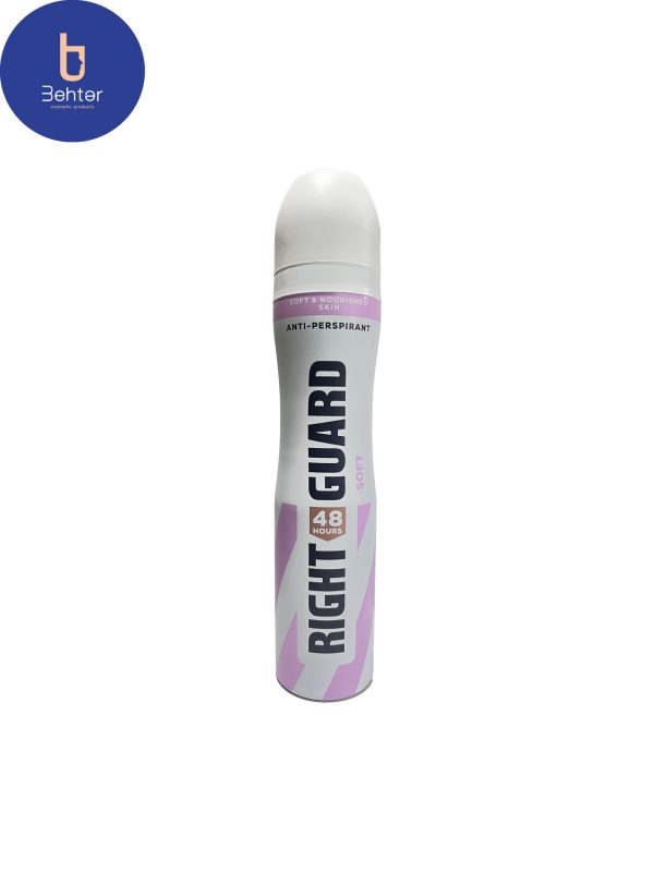 اسپری ضد تعریق زنانه Right Guard مدل Soft حجم 250 میل Right Guard antiperspirant spray for women, soft model, volume 250 ml