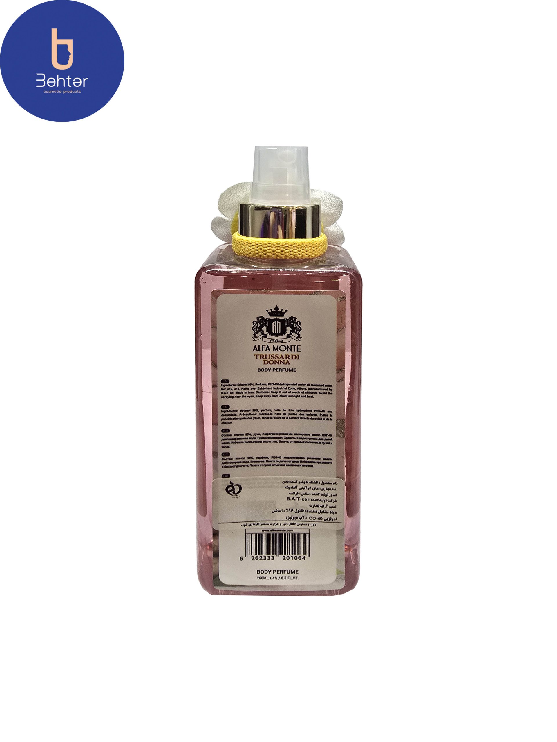 باذی اسپلش دونا با بوی ملایم و شیرین که با خود شادابی بهمراه دارد به خانوم های امروزی برای استفاده در روز توصیه می شود . در هرم بویایی دونا و در نت اولیه روایح مرکباتی و میوهای حضور دارند که یوزو، میوهجات و لیموترش را شامل میشود. در نت میانی فضا کاملا گلی شده و یاس، لاله مردابی و شکوفه پرتقال عوامل مؤثر در این رایحه هستند. در نت پایه نیز روایح وانیل، نعناع هندی، سدر و چوب صندل پایان بخش رایحه دونا میباشند.اين بادی با رایحه ای گلی شرقی نسخه جديد با ظاهري كمي متفاوت ، عطر تروساردي دونا است كه در سال 1994 به بازار عرضه شده بود.