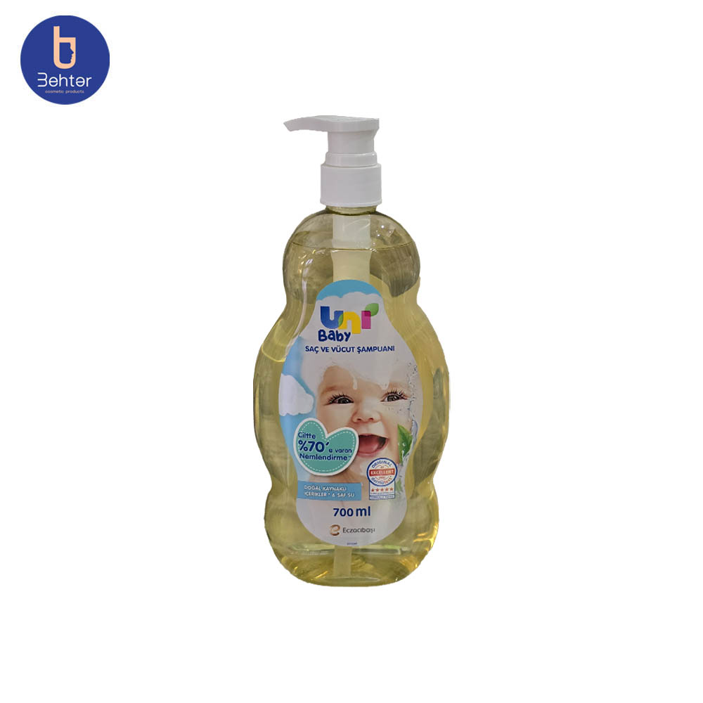 شامپو سر و بدن یونی بیبی Uni Baby مخصوص کودک، محصولی معتبر و پر فروش ساخت کشور ترکیه است. این محصول قابلیت استفاده برای پوست و موی بدن و سر کودک را دارد به گونه ای که پاکسازی و آلاینده زدایی را به طور کامل انجام داده و باعث از بین رفتن چربی ها می شود.