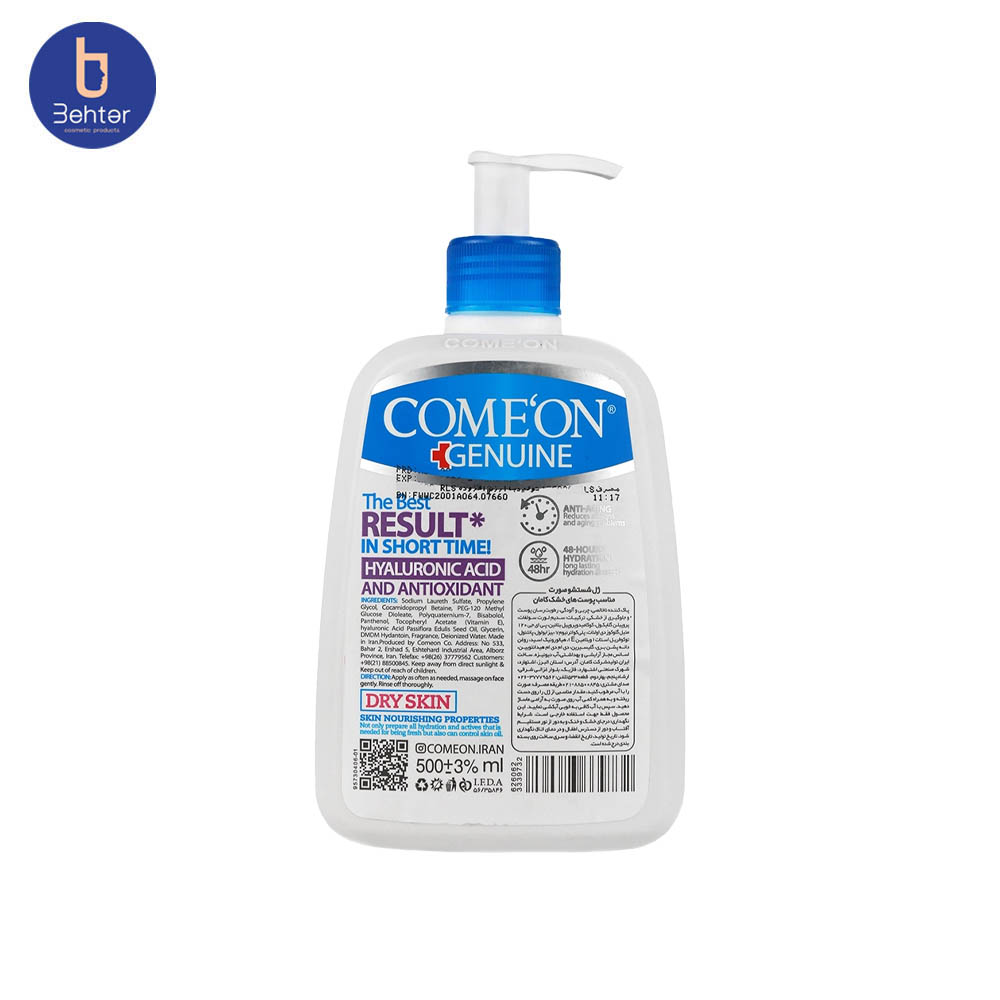 ژل شستشوی صورت کامان مخصوص پوست خشک حجم 500میل Comeon Face Wash For Dry Skin,500Ml