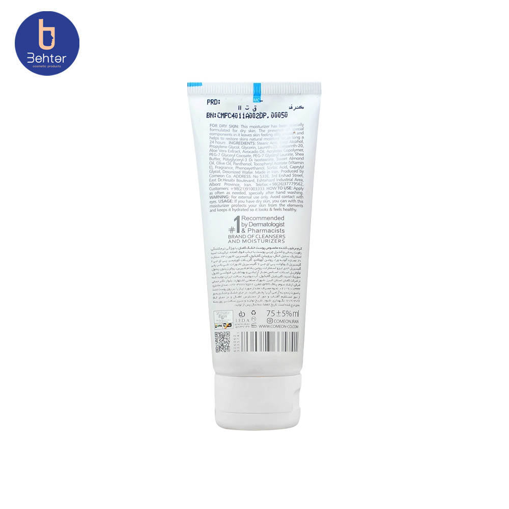 کرم مرطوب کننده دست و صورت پوست خشک کامان حجم 75میل Comeon Moisturizing Hand and Face Cream for Dry Skin, 75ml