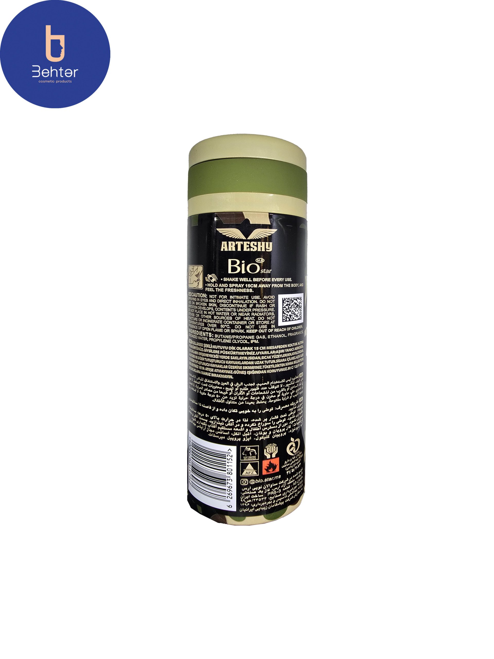 اسپری خوشبوکننده بیواستار اسانس ارتشی حجم 200میل Deodorant Spray Biostar , Arteshy Essential Oil, 200ml