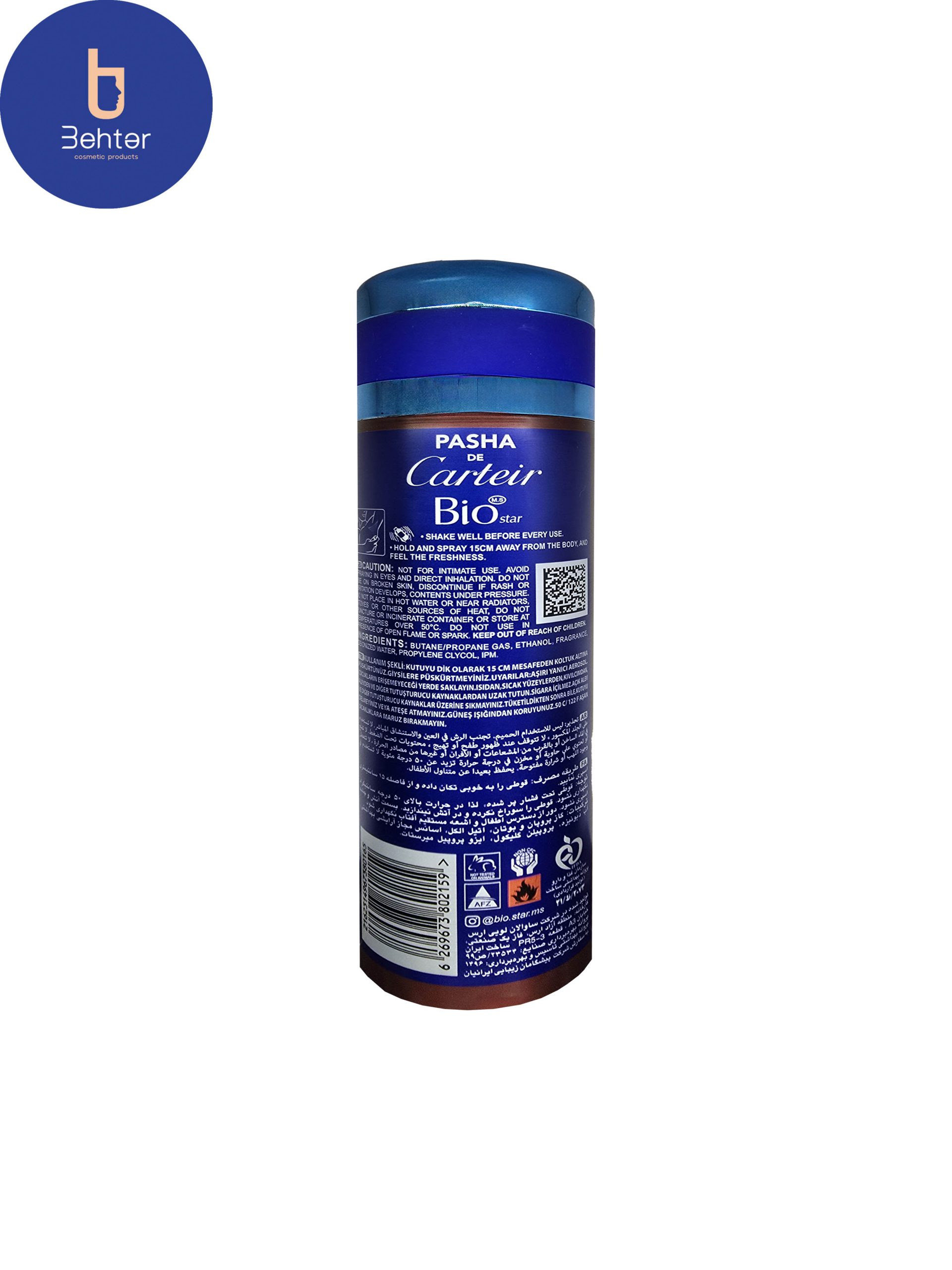 اسپری خوشبو کننده بیواستار اسانس پاشا د کارتیر ادیشن نویر حجم 200میل Deodorant Spray Biostar, Pasha de Cartier Edition Noir Essential Oil , 200ml